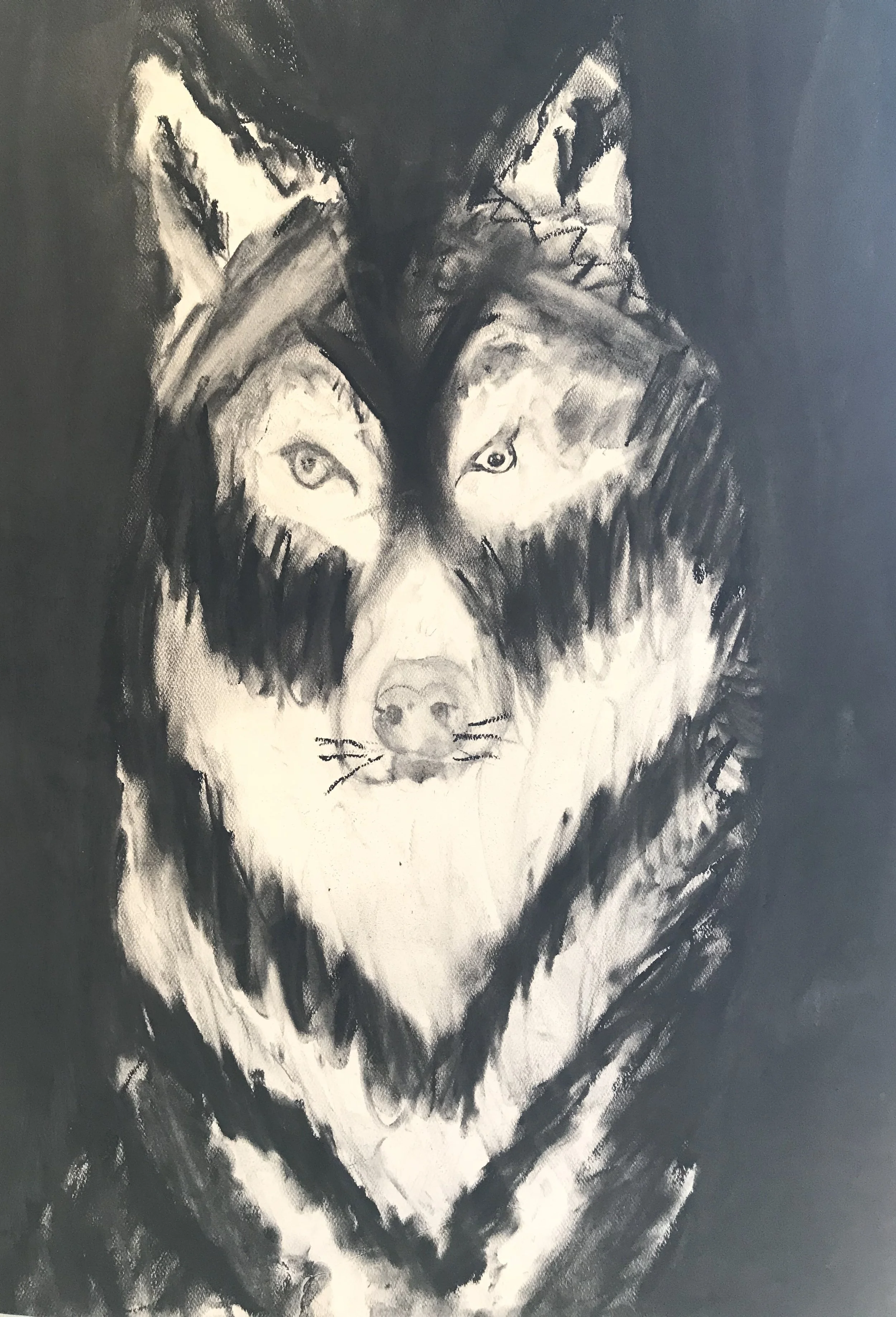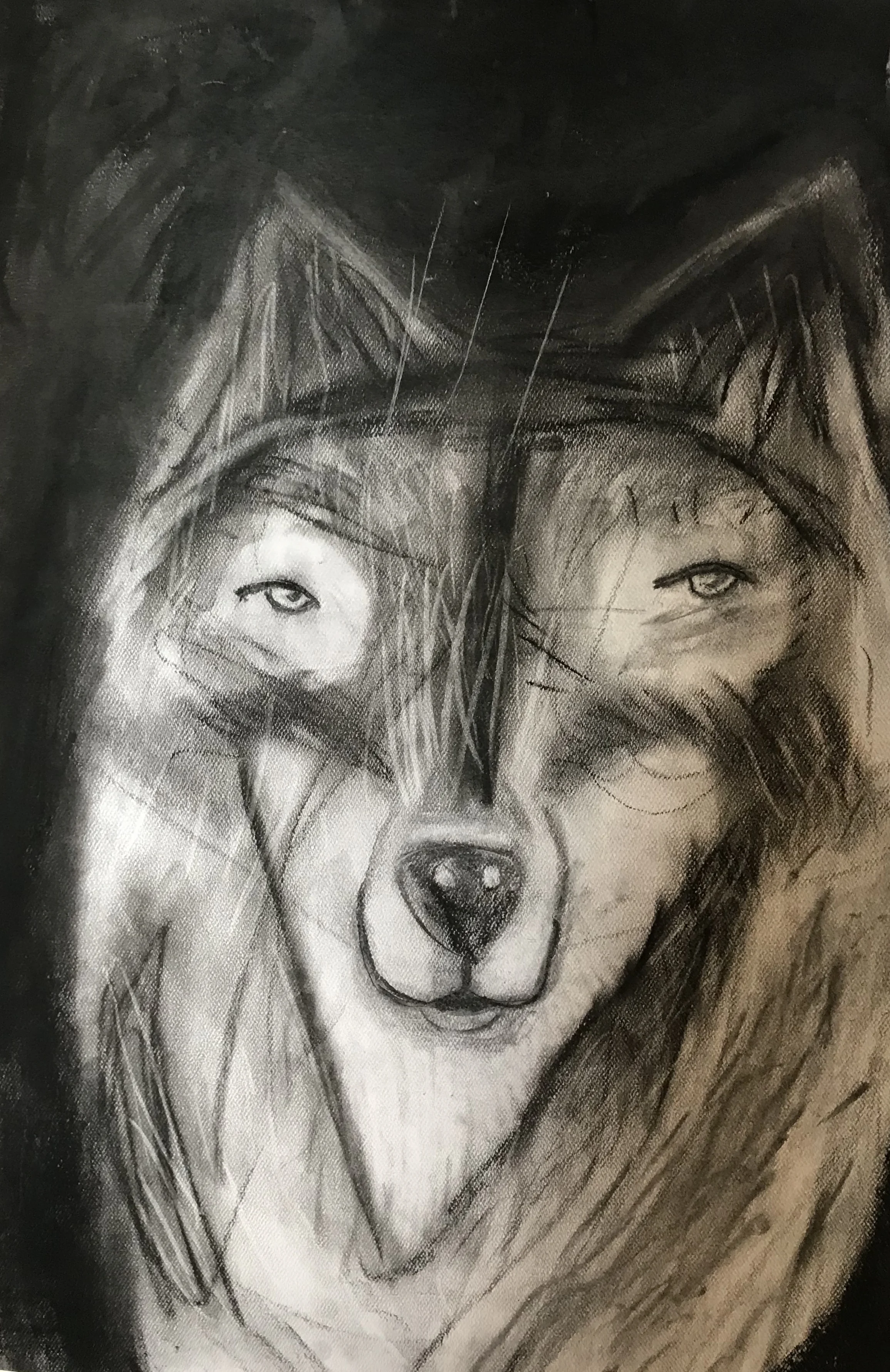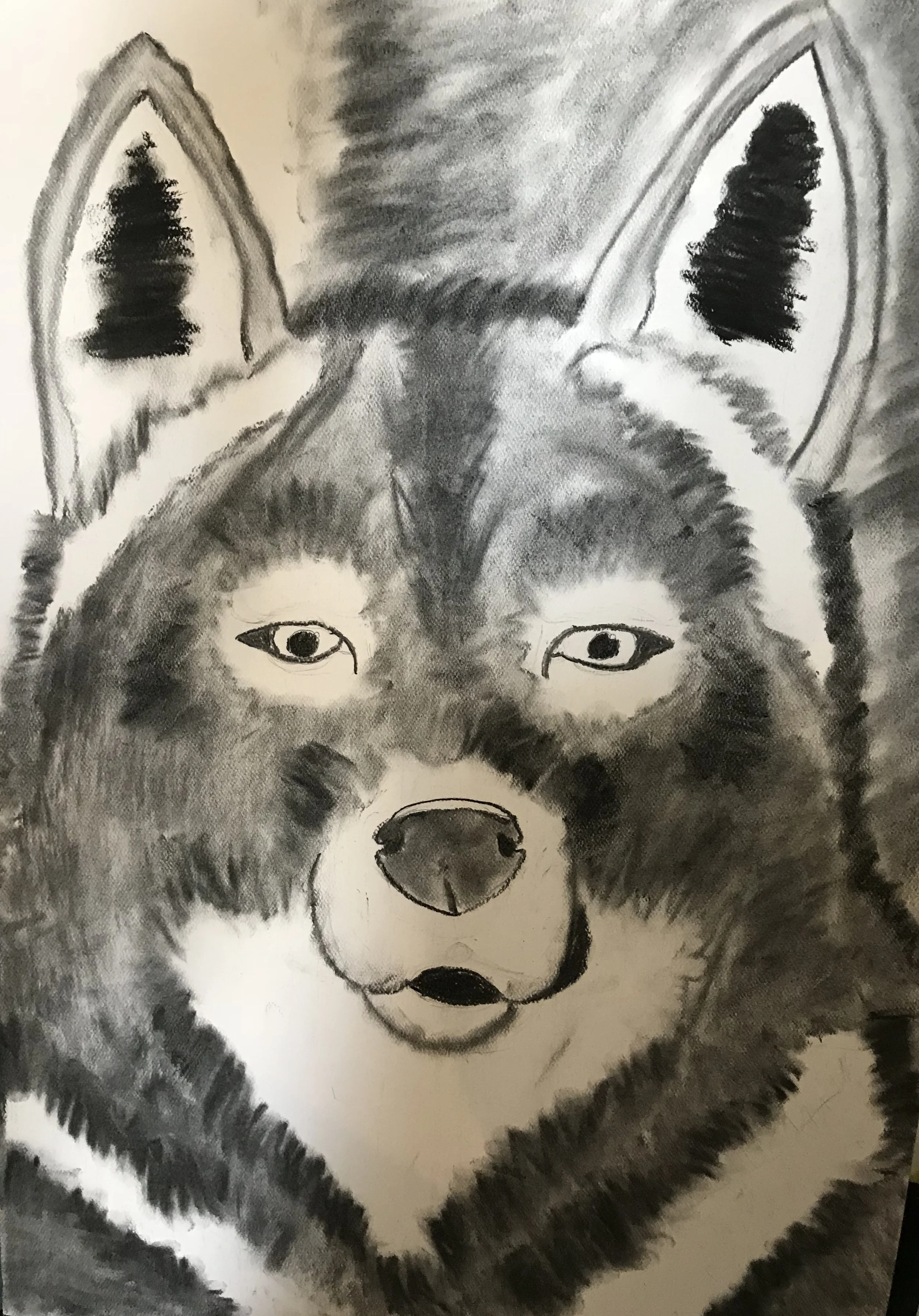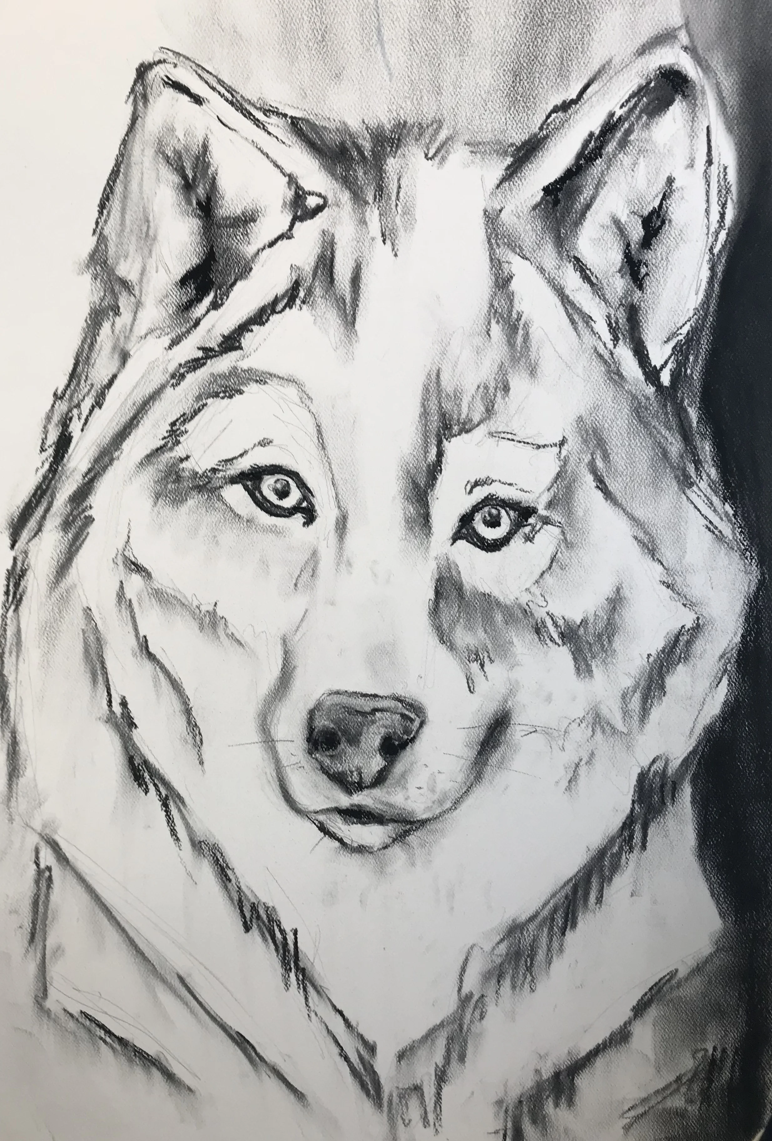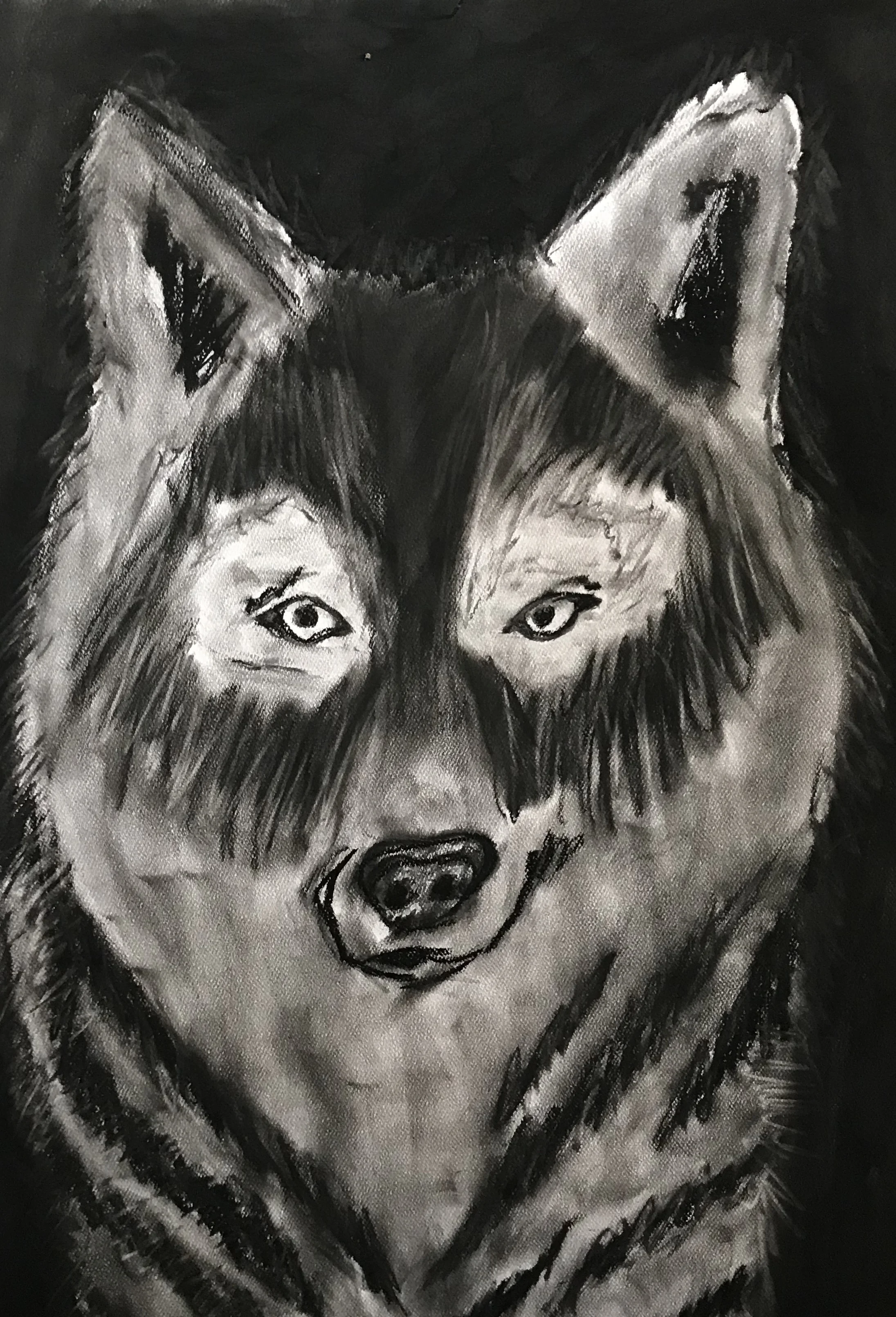 Charcoal drawing of a wolf's face