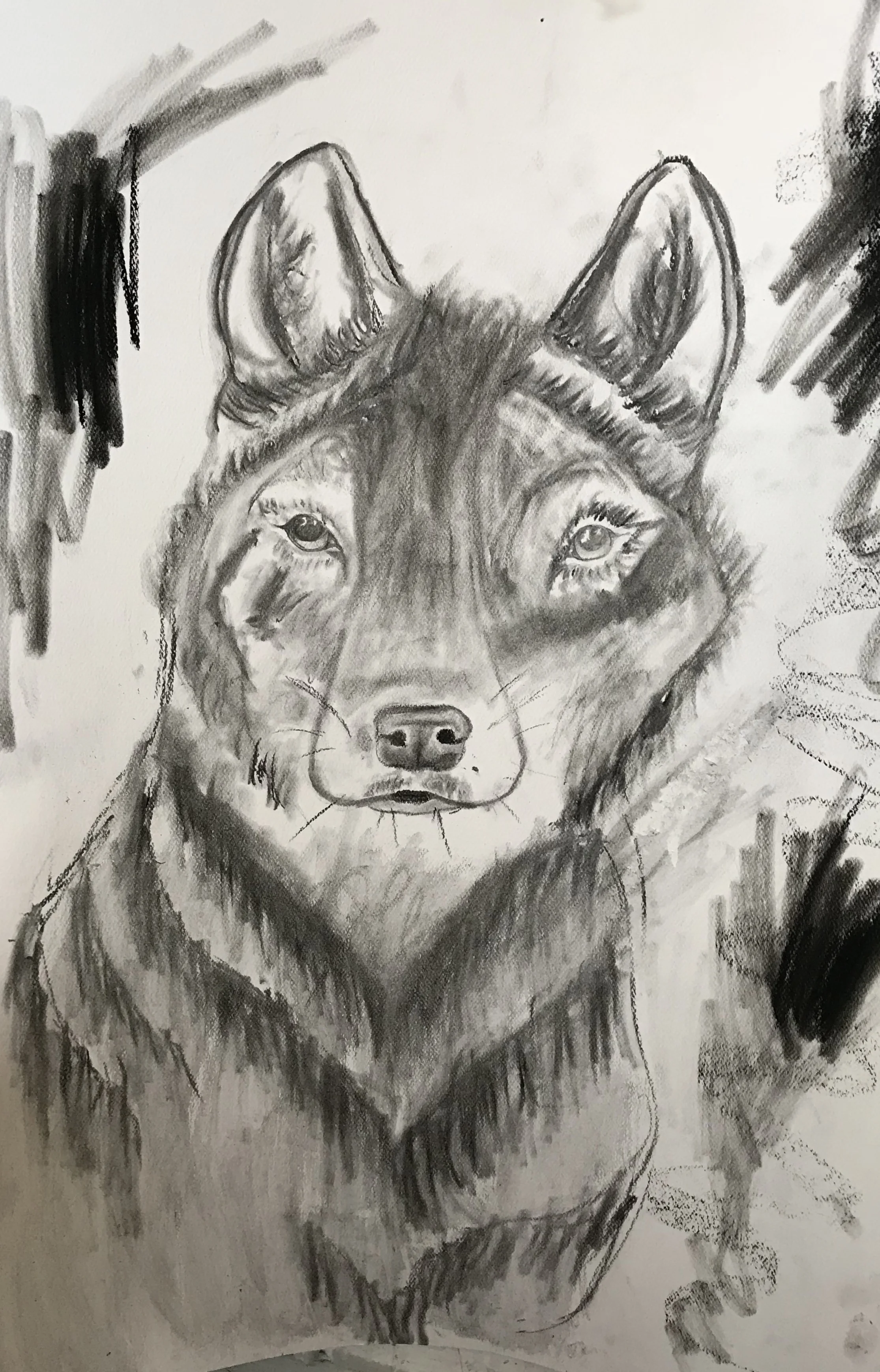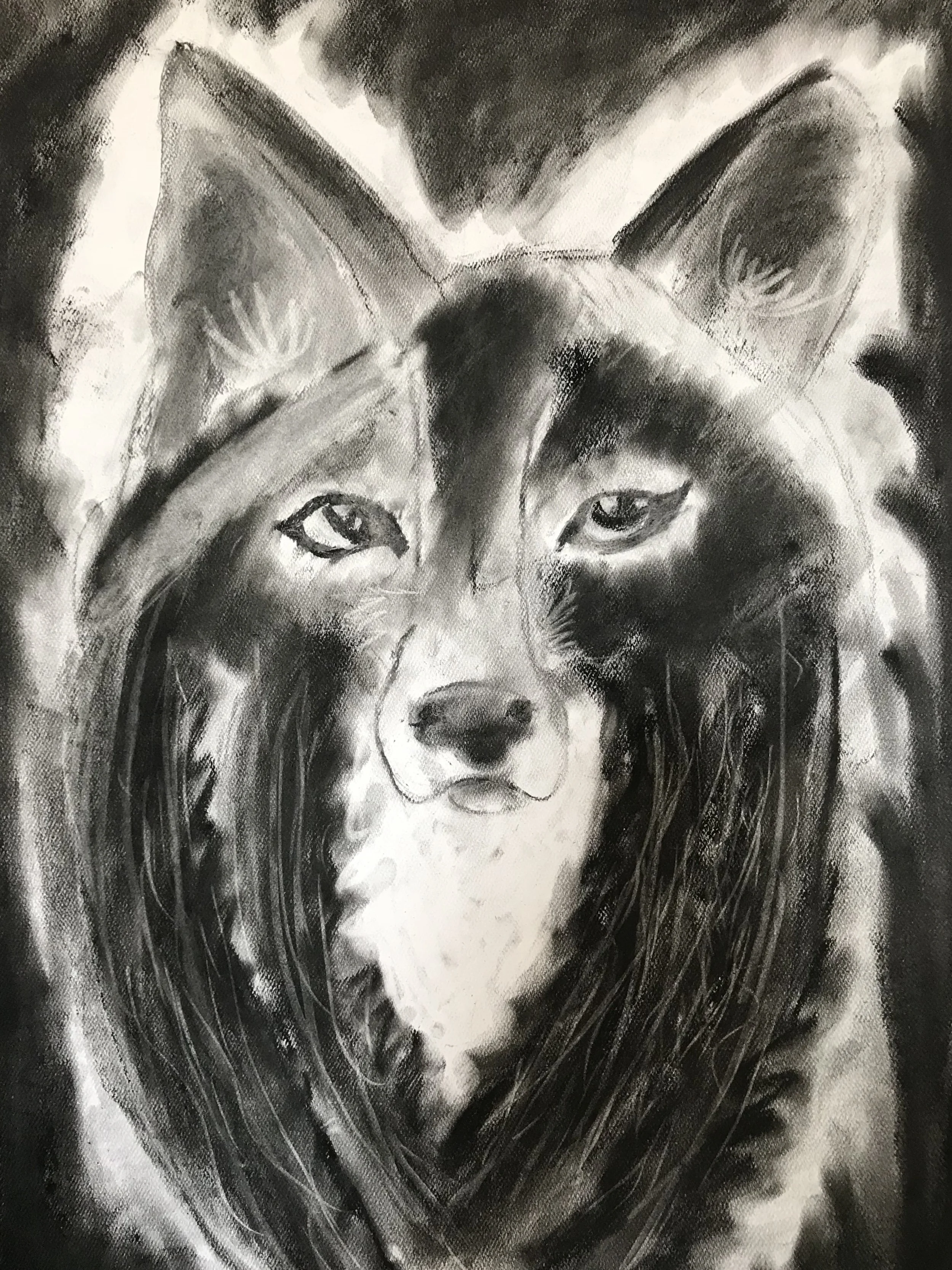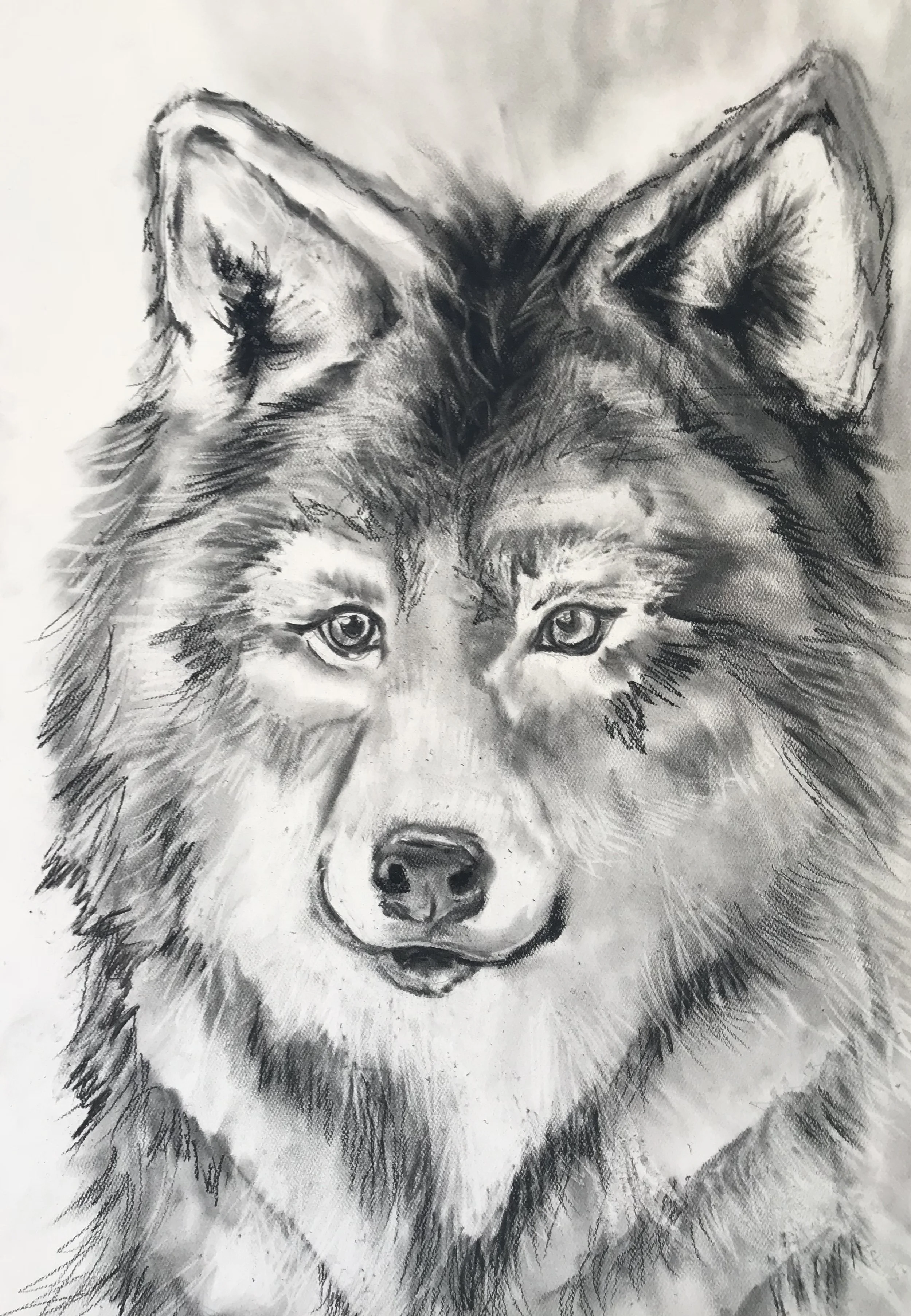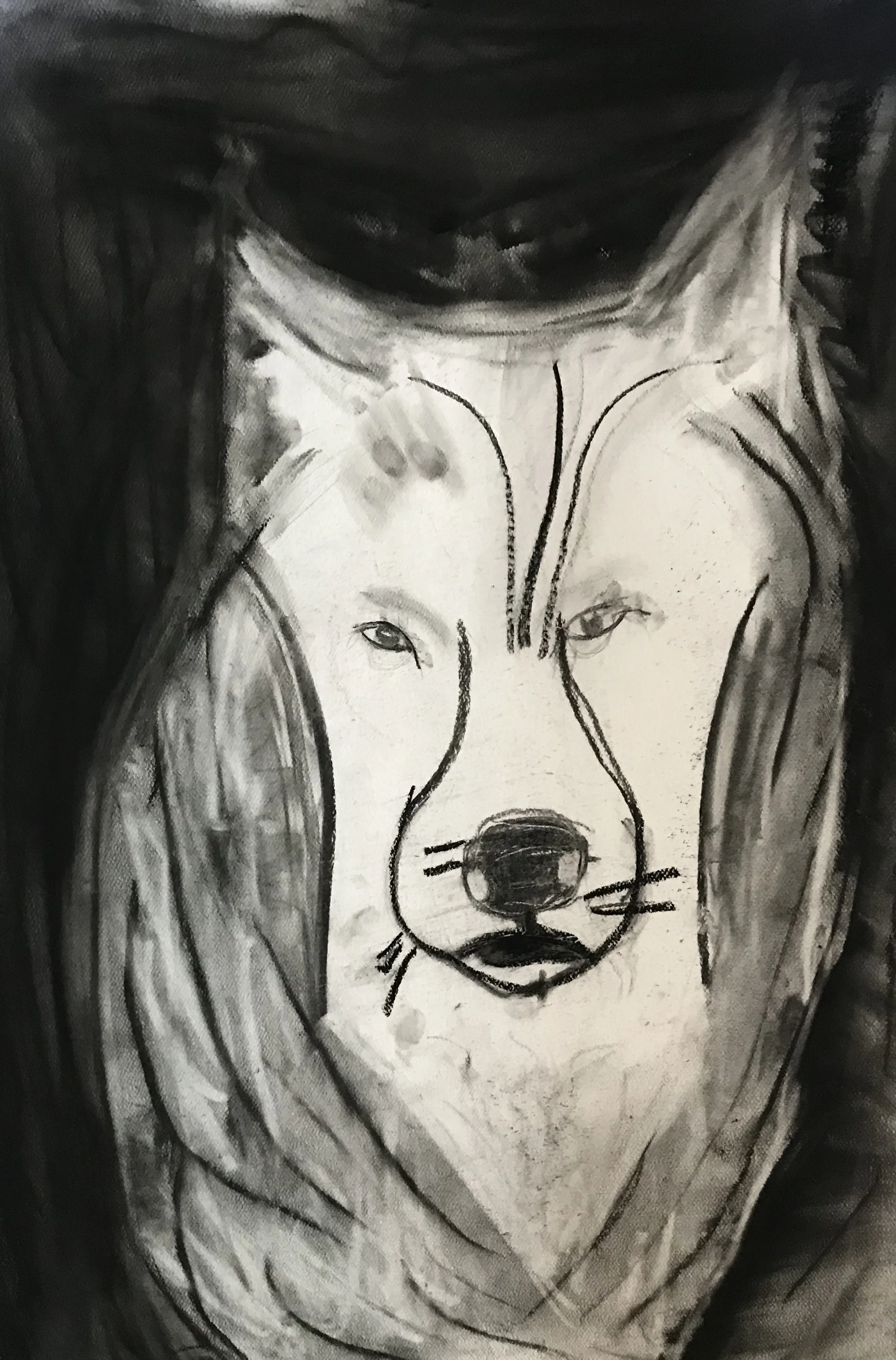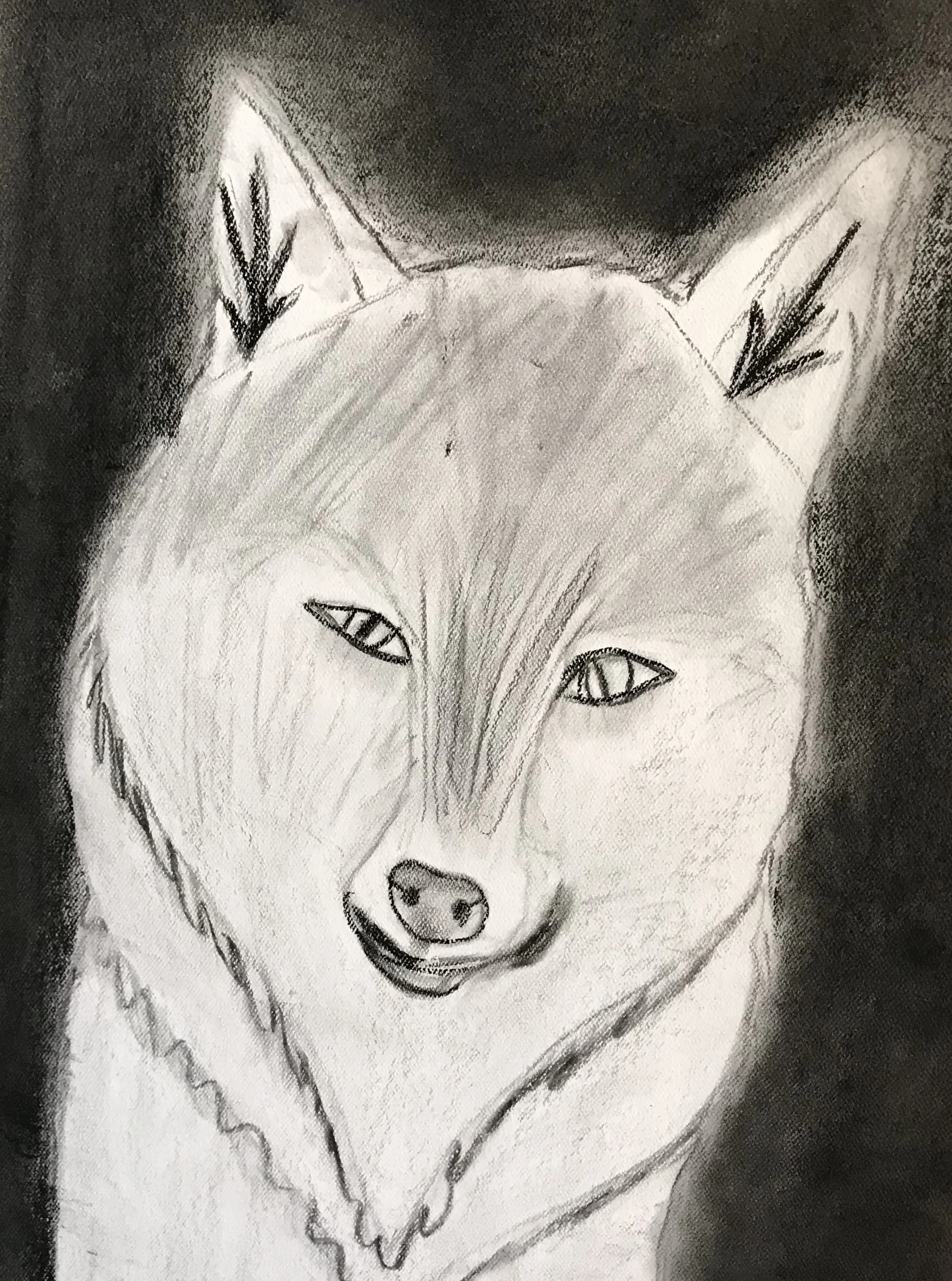 Charcoal drawing of a wolf's face