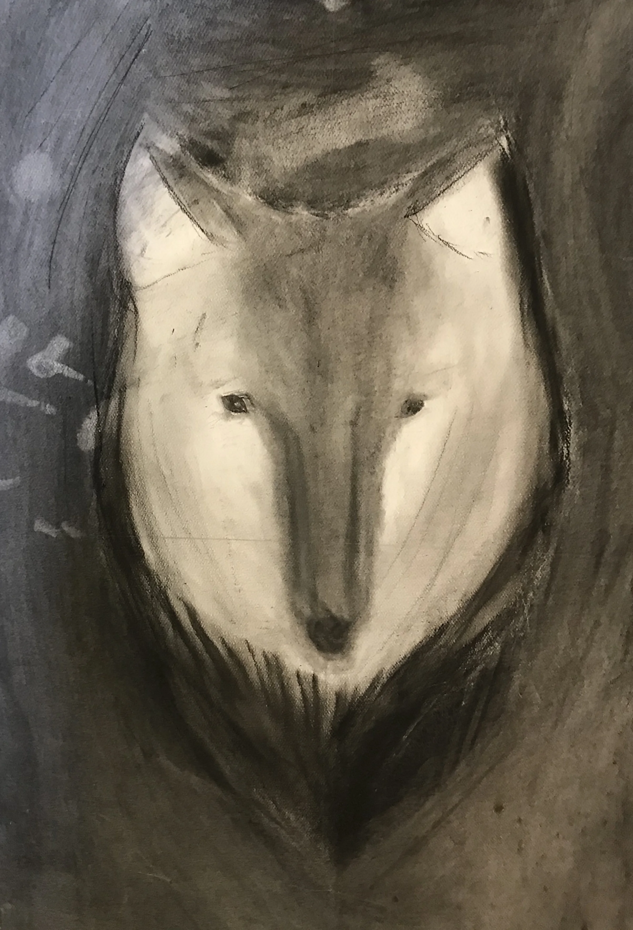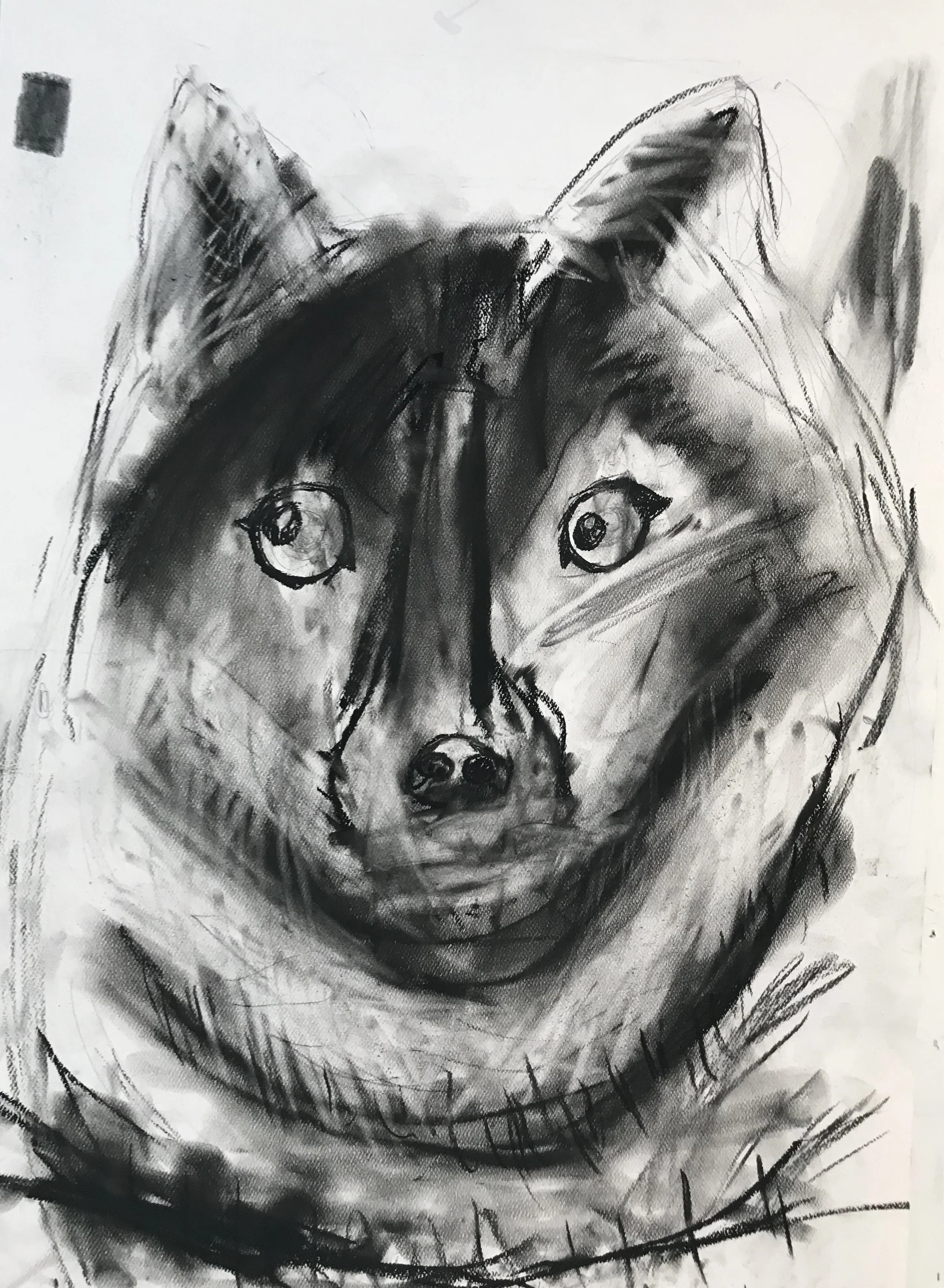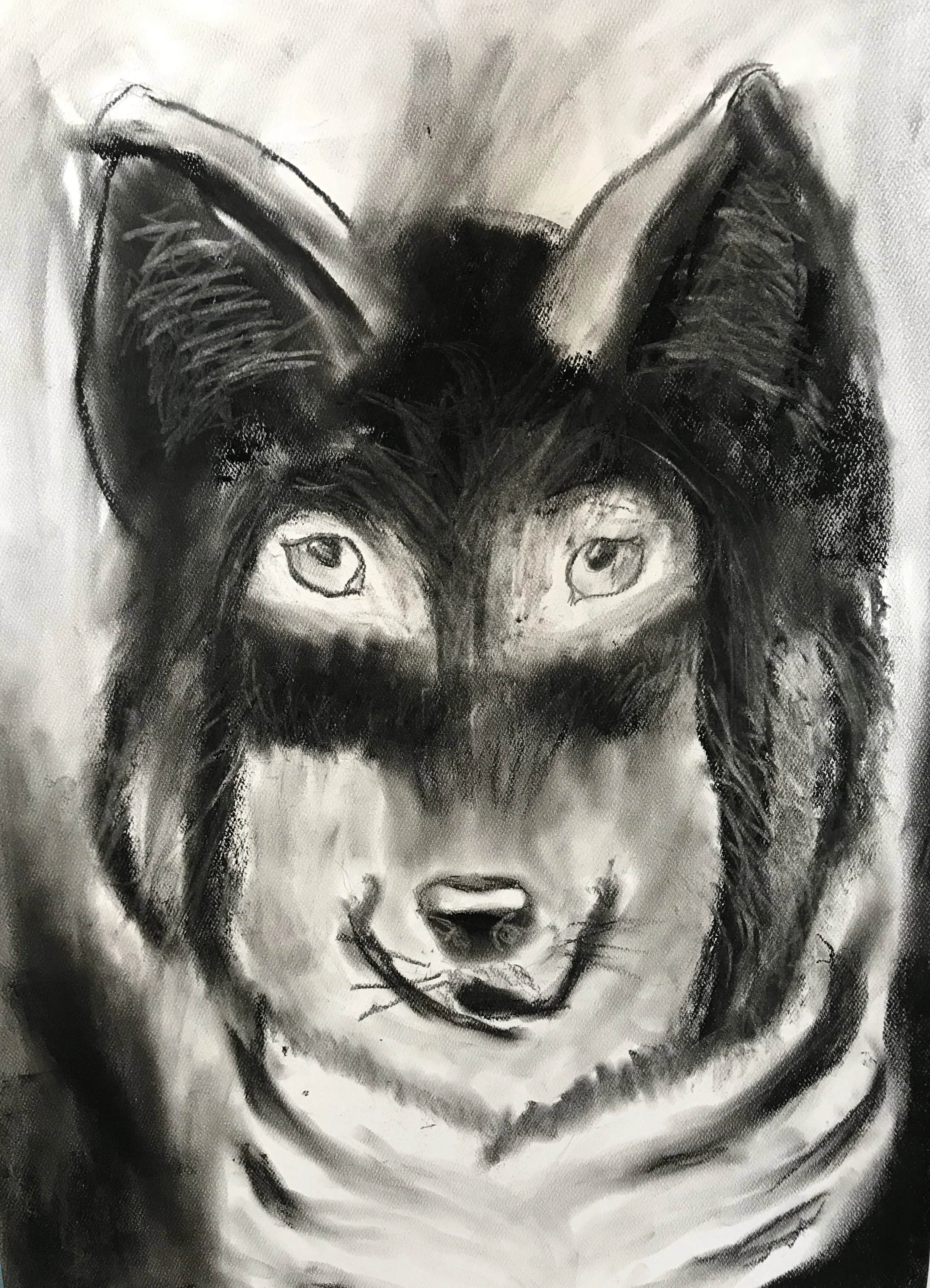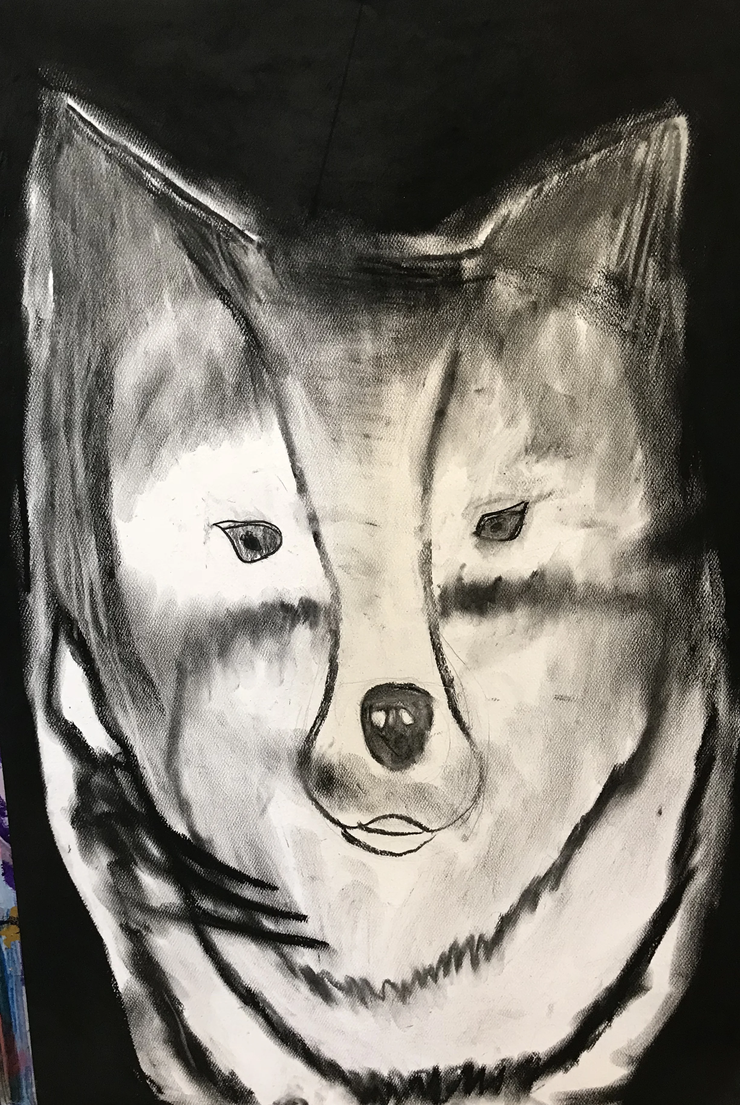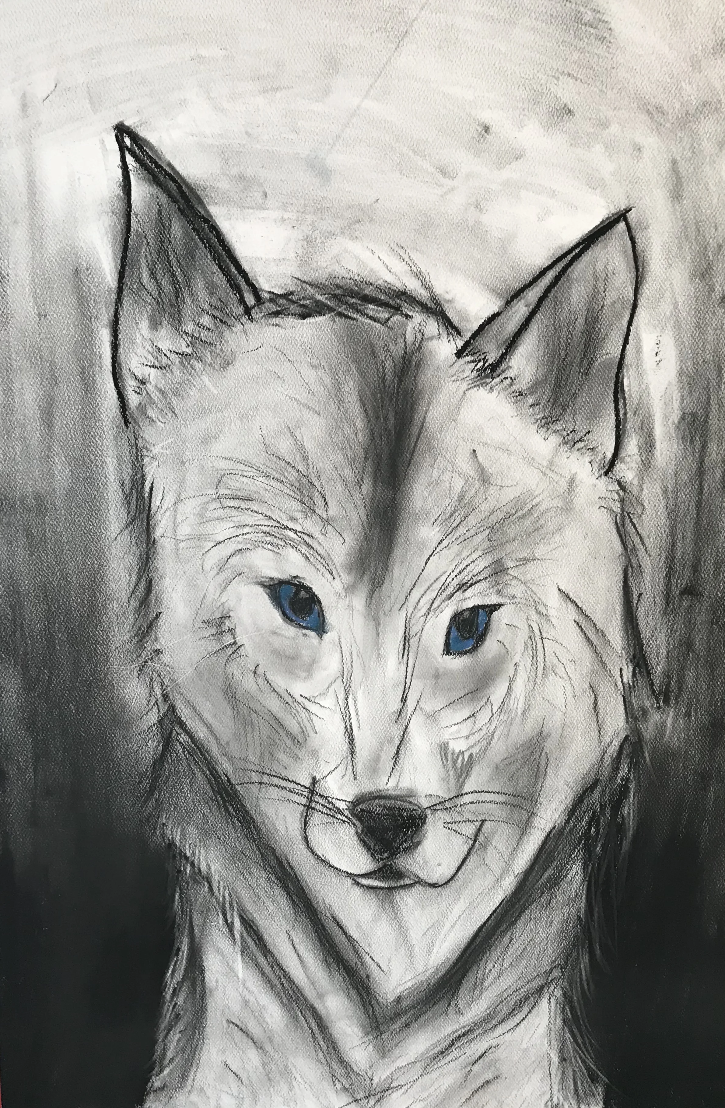 Charcoal drawing of a wolf's face